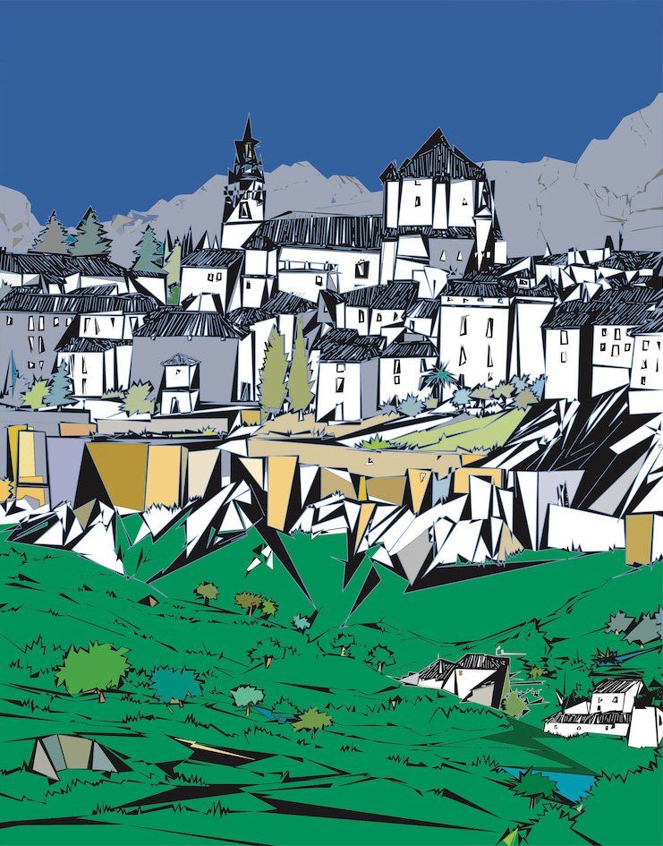 de paisajes urbanos y vistas de pueblos de la Serranía,