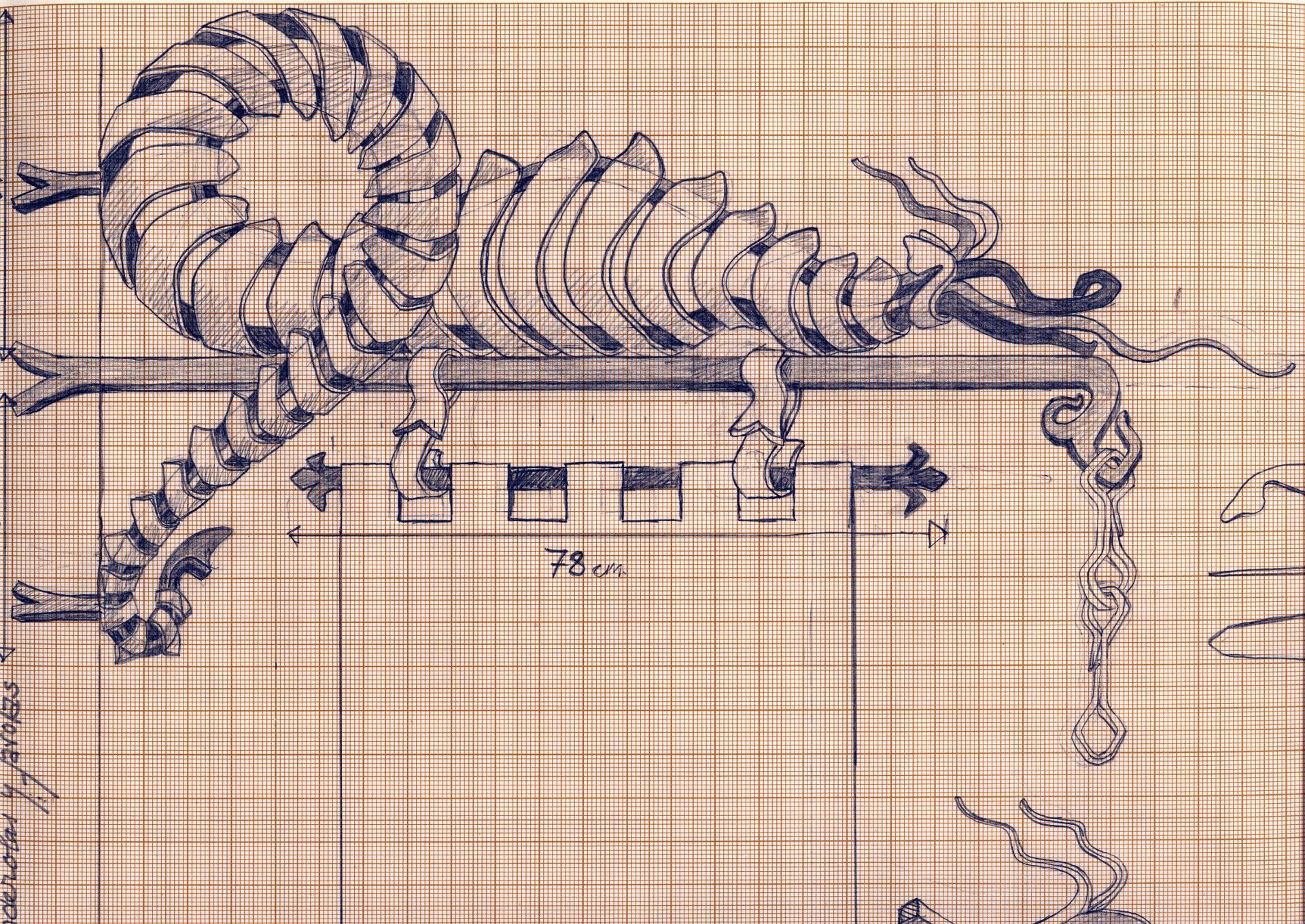 El autoencargo viene dado por la responsabilidad que supone haber recibido previamente varios encargos de representación de símbolos de la institución, colocados en la pista de ejercicios y posteriormente el diseño y modelado de la portada con el escudo en su dintel, del primer edificio de oficinas construído en el recinto interior. Este escudo se hizo con piedra artificial, mediante un molde del modelado en arcilla, y el modelo restauró e insertó sobre la entrada de las visitas.